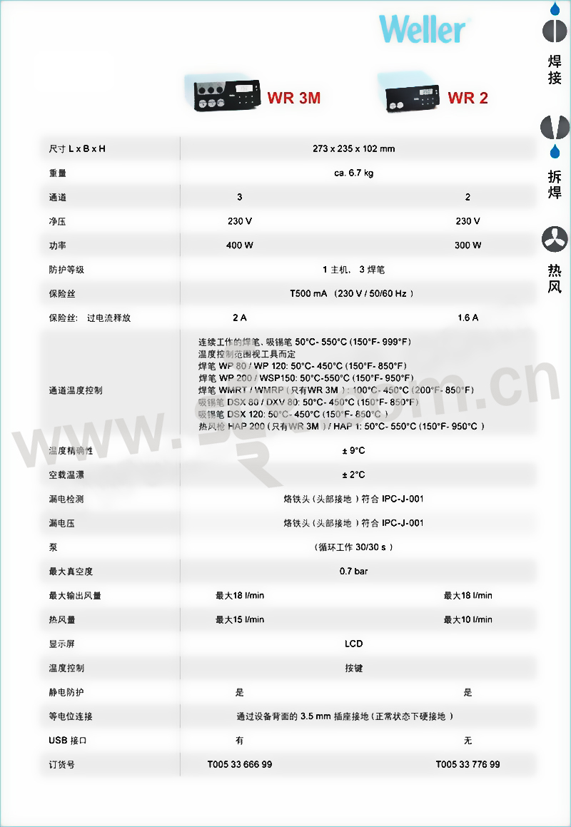 WELLER/威乐 WR3000M专业综合返修台(通用焊接/直头吸锡/热风/真空吸笔) T0053368399N 1个