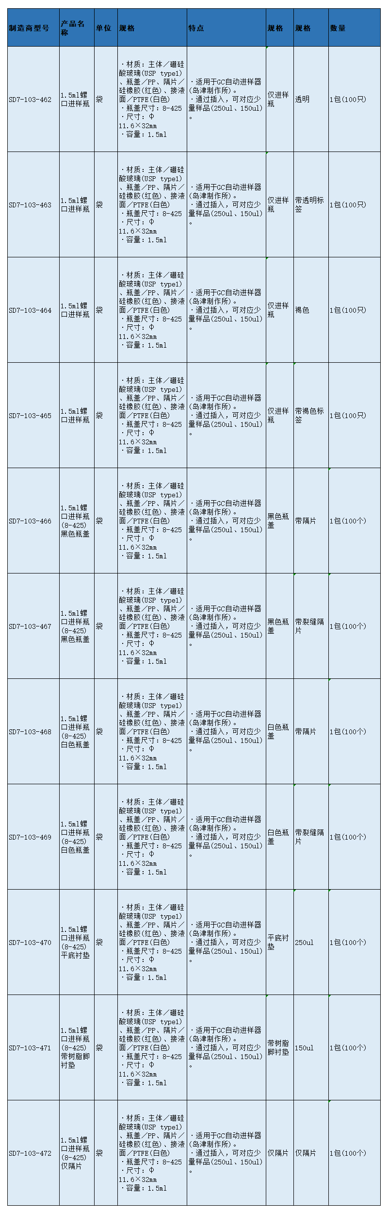 SLAMED 1.5ml螺口进样瓶(8-425)带树脂脚衬垫 150-IP SD7-103-471