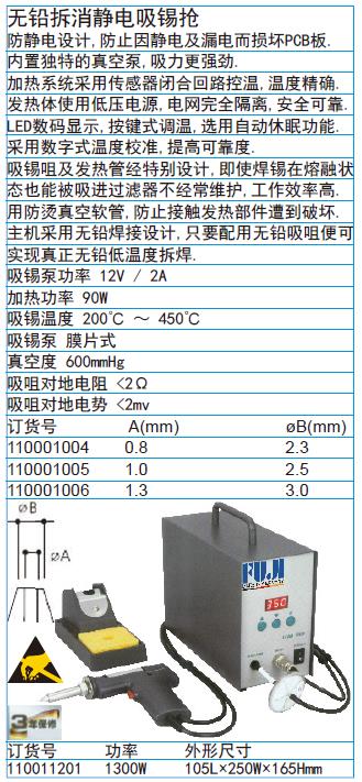 订货号 制造商型号 吸锡泵功率 加热功率 吸锡温度 吸锡泵 真空度 吸咀对地电阻 吸咀对地电势 外形尺寸 重量 价格 购物车
