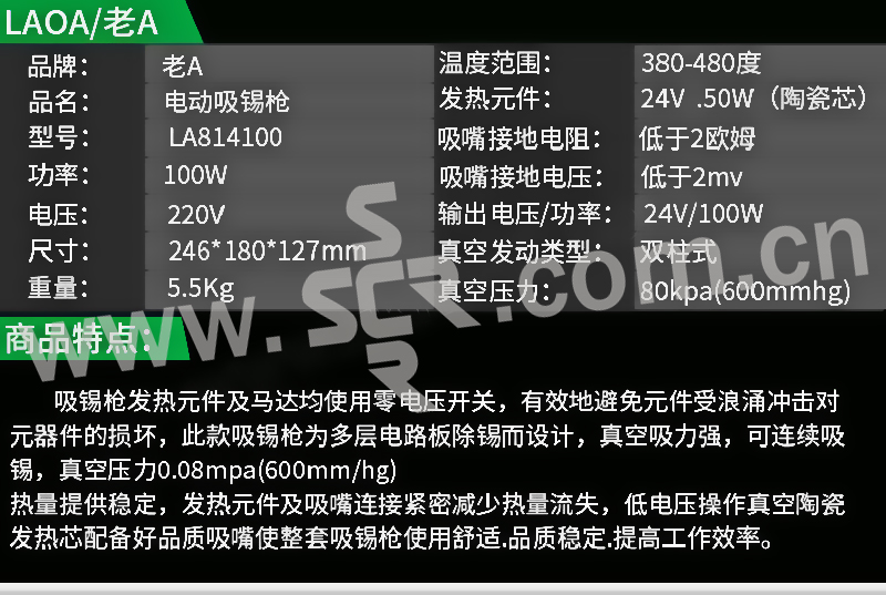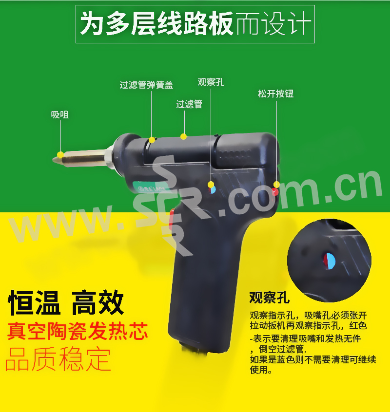 ·连续吸锡吸力强劲,低电压操作真空发热芯工作效率高