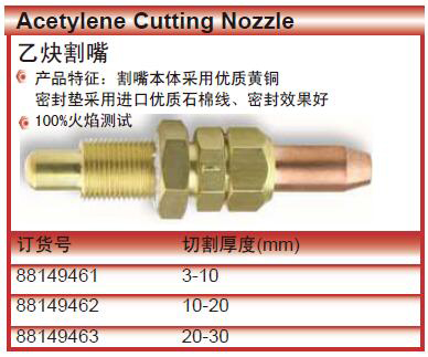 ·割嘴本体采用优质黄铜 ·密封垫采用进口优质石棉线、密封效果好 ·100%火焰测试