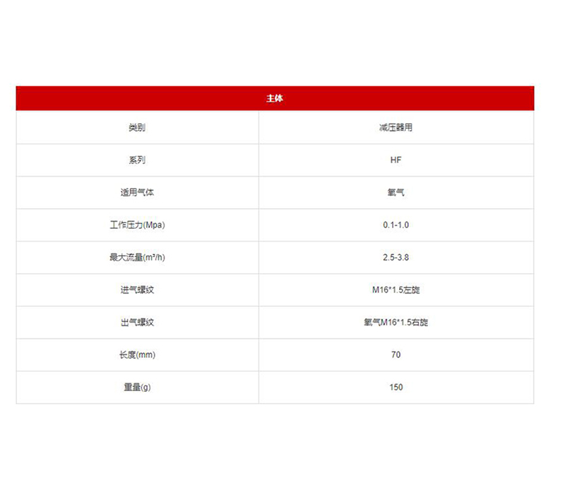 GD6932 GD99-900-2570 氧气 0.1-1.0Mpa 2.5-3.8m³/h M16*1.5左旋 氧气M16*1.5右旋 70mm 150g 减压器用 HF 115.69