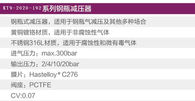 ·钢瓶式减压器,适用于钢瓶气减压及其他多种场合黄铜镀铬材质,适用于非腐蚀性气体 不锈钢316L材质,适用于腐蚀性和微有毒气体