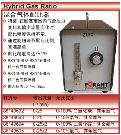 0-25x2l/min 0-100%二氧化碳,其余氩气