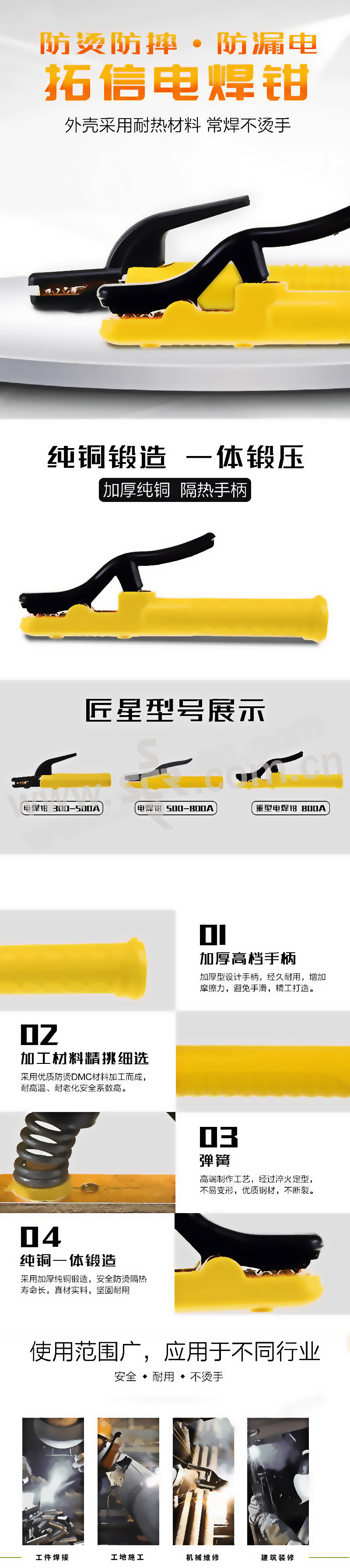 ·手柄采用全新绝缘耐热材料成型。