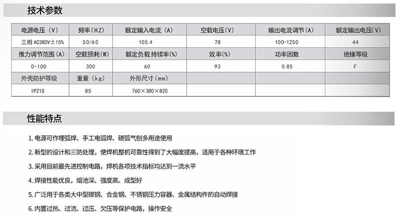 ·采用IGBT逆变技术,具有平特性和下降特性两种输出特性,容手弧焊功能,可用于碳弧气刨及手工电弧焊。