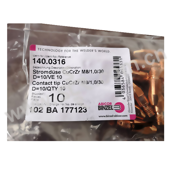 BINZEL/宾采尔 导电嘴 铬锆铜 M8/1.0/30 140.0316 1mm 10支 1包