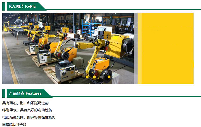 ·具有耐热、耐油和不延燃性能 ·特别柔软,具有良好的弯曲性能 ·电缆绝缘抗撕、耐磨等机械性能好 ·国家3C认证产品