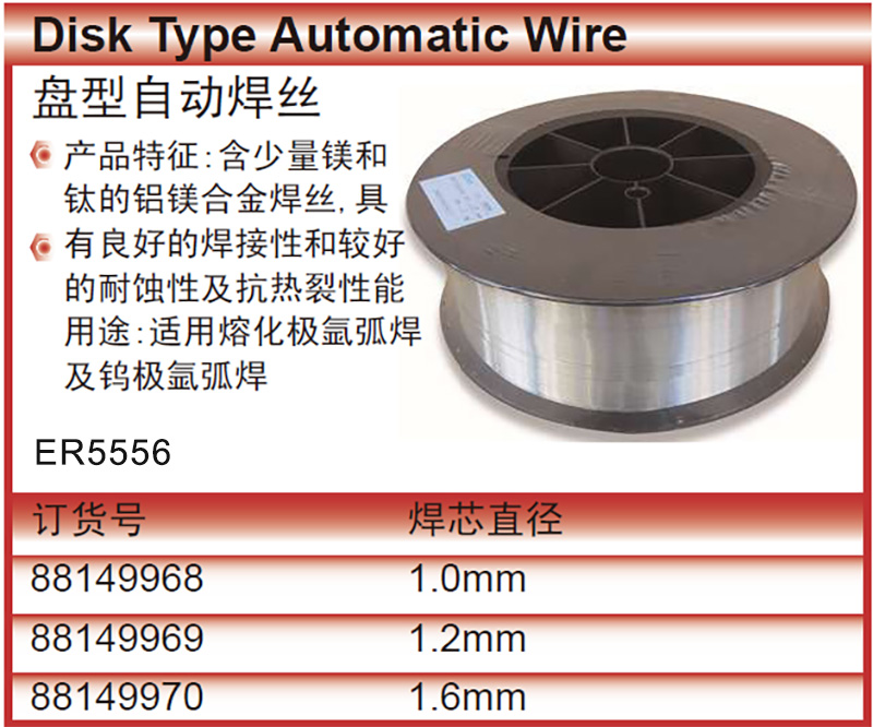 规格:  直径1.6mm;牌号 ER5556;2kg/盘 制造商型号:  88149970
