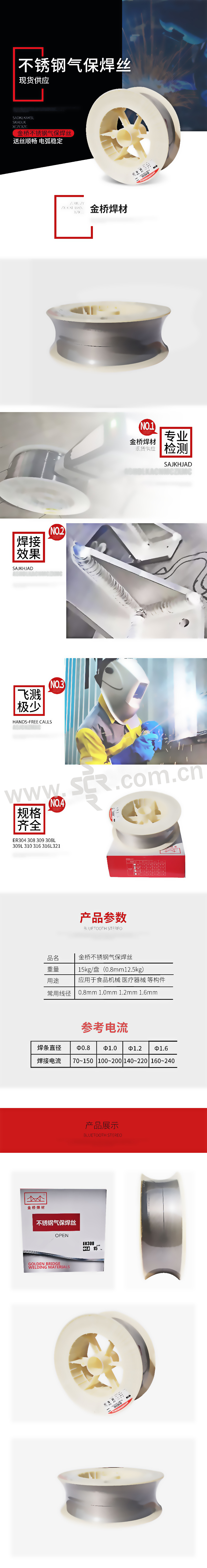 JINQIAO/金桥 308L不锈钢气保焊丝 JQ-MG308L-1mm 15kg 1盒