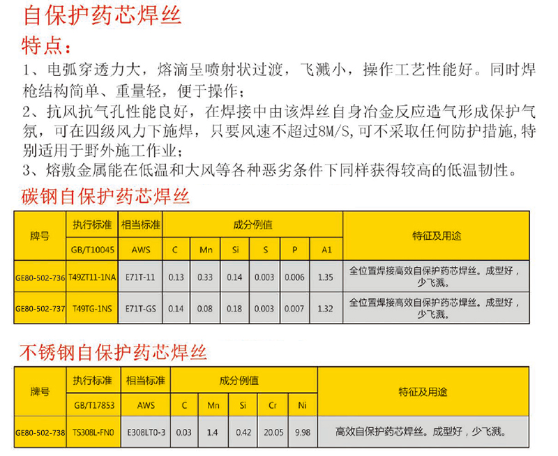 不锈钢自保护药芯焊丝成型好少飞溅