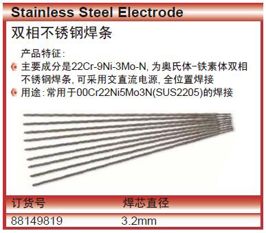 ·主要成分是22Cr-9Ni-3Mo-N,为奥氏体-铁素体双相不锈钢焊条,可采用交直流电源,全位置焊接