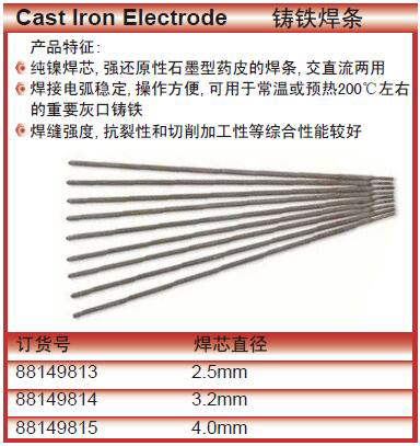 ·纯镍焊芯,强还原性石墨型药皮的焊条,交直流两用 ·焊接电弧稳定,操作方便 ·焊缝强度,抗裂性和切削加工性等综合性能较好