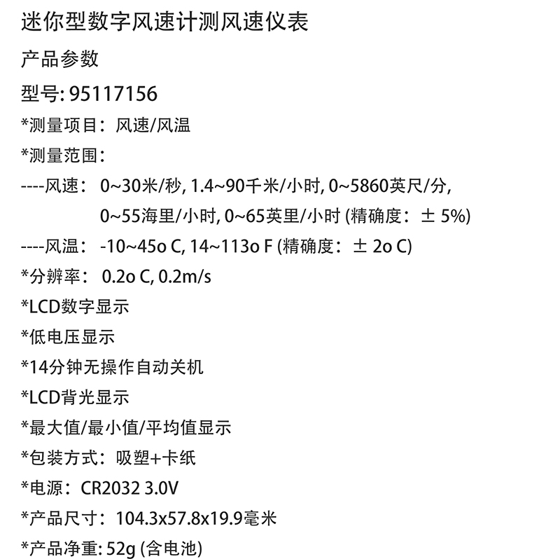 迷你型数字风速计测风速仪表 95117156 104.3×57.8×19.9mm 1台