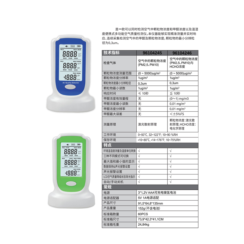 颗粒物浓度 0-5000ug/m³ 甲醛 0-1mg/m³