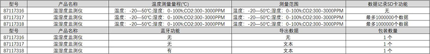 温度:-20—50℃;湿度:0-100%;CO2:300-3000PPM