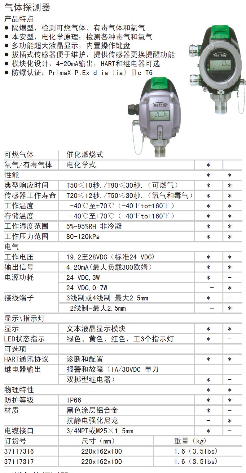 订货号 制造商型号 测量范围 供电方式 工作温度 工作湿度 检测气体 外形尺寸(长×宽×高) 重量 备注 典型响应时间 传感器工作寿命 存储温度 工作电压 输出信号 电源功耗 接线端子 显示 HART通讯协议 防护等级 材质 价格 购物车