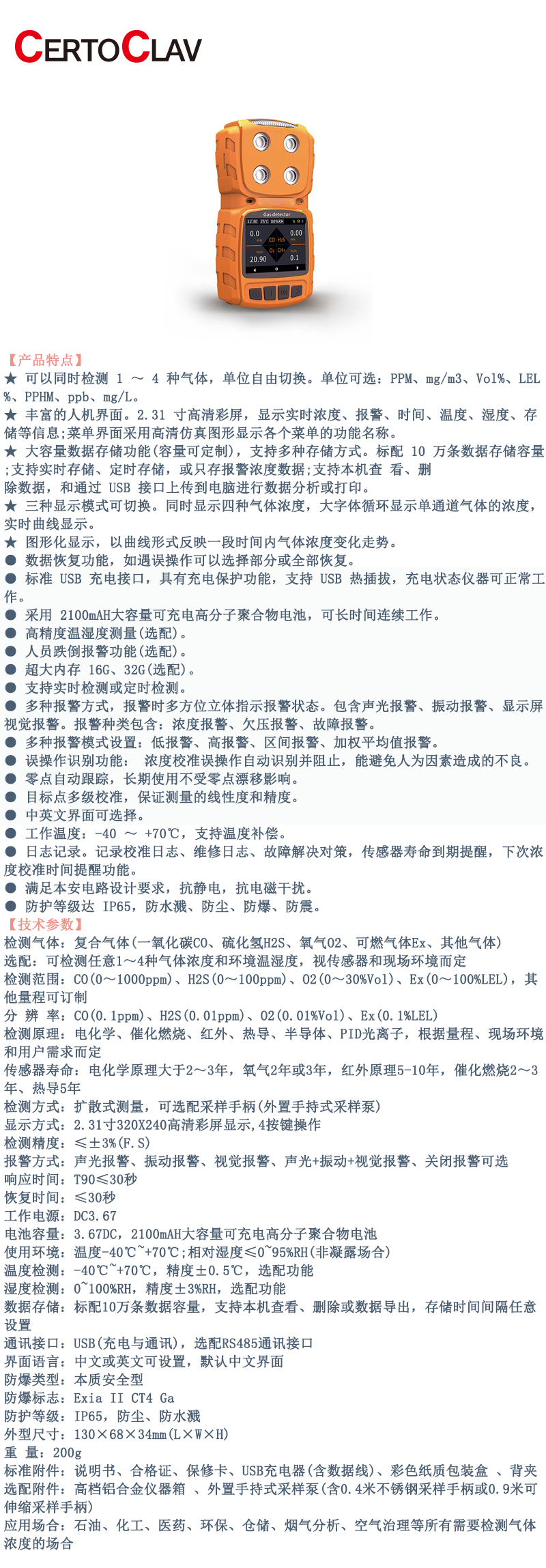 ·小巧便捷,好携带,防爆,定制型多合一检测