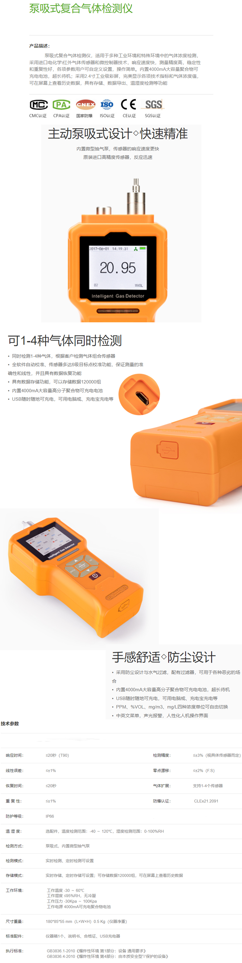 泵吸式复合气体检测仪