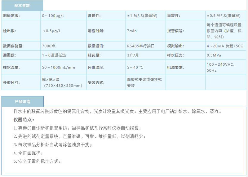 单通道数显中文在线联氨分析仪