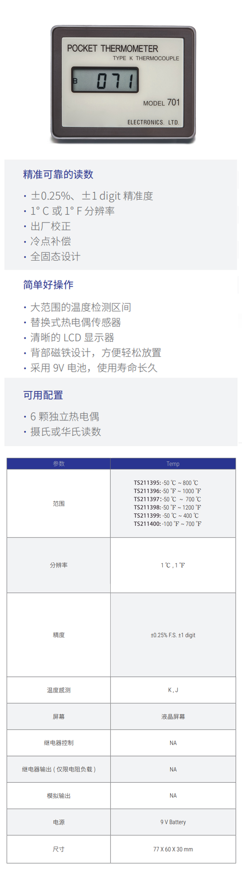 测温范围-100~700°F
