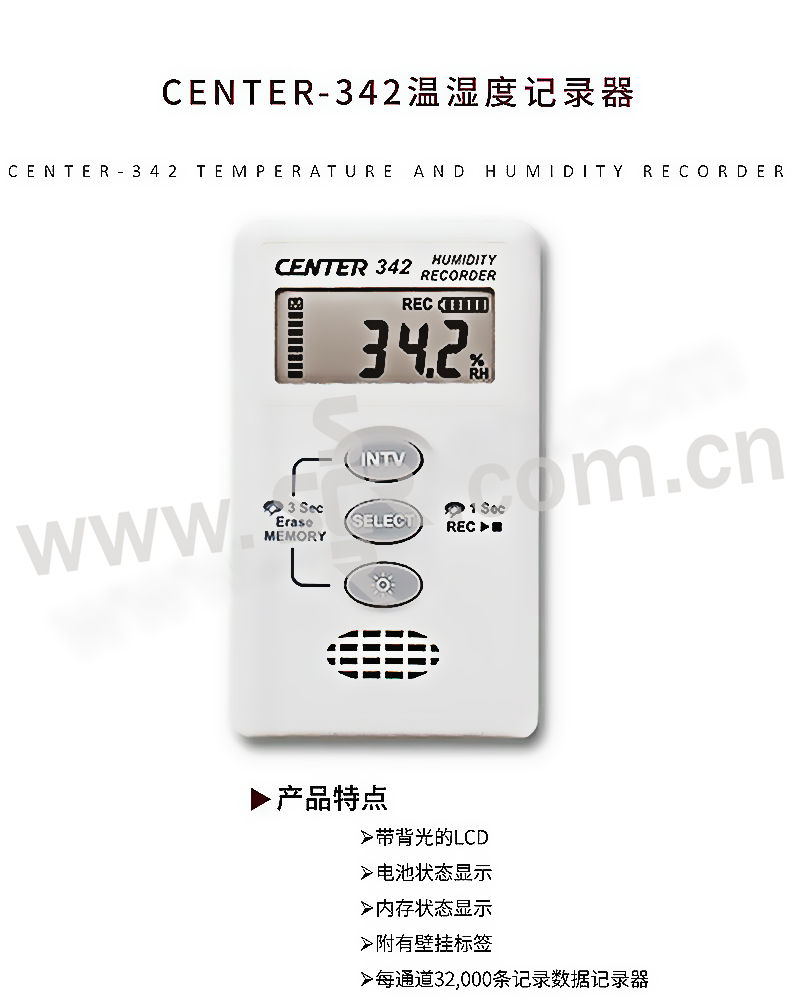 CENTER/群特 温湿度记录器套装 CENTER-342+345 一套含主机软件 SE342 挂墙耳 1套