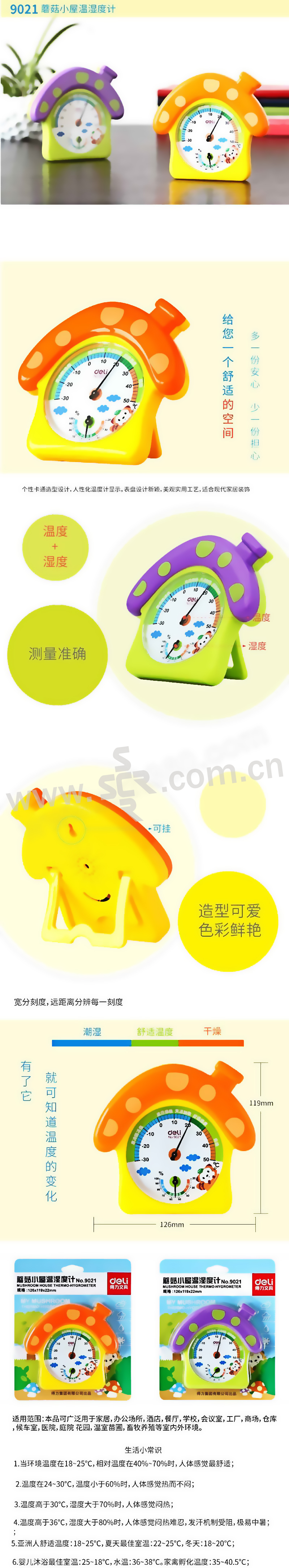DELI/得力 蘑菇小屋温湿度计 9021 1只