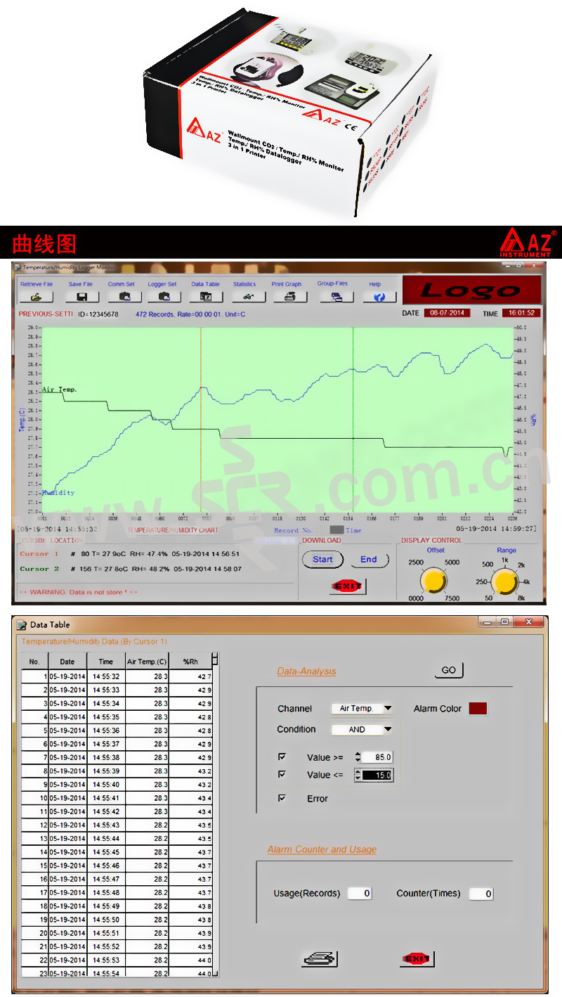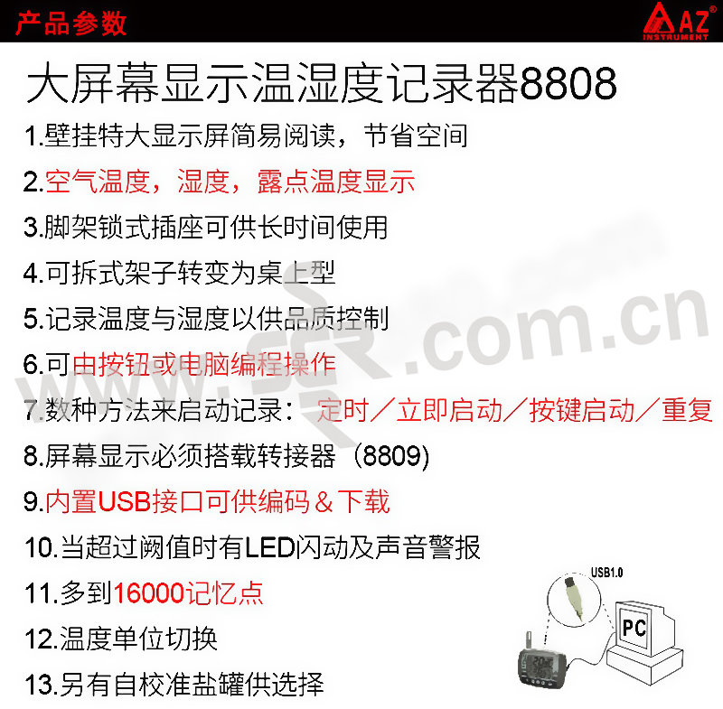 AZ/衡欣 温湿度记录仪 AZ8808 液晶显示 1台