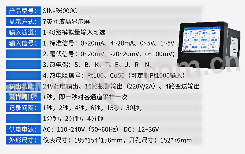 ·RX6000C 系列彩色无纸记录仪 48 路万能输入(可组态选择输入:标准电压、标准电流、热