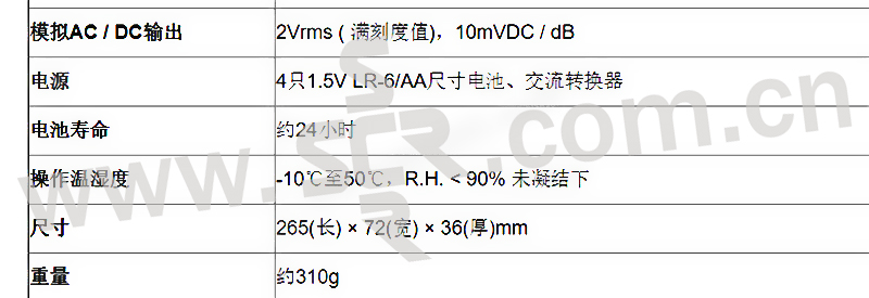 ·符合 IEC 61672-1等级2标准·可同时测量最大和峰值音量·动态范围60dB·5个档位自 30至130dB·A及C频率加权·快速、慢速时间加权·200M笔数据记录容量 (micro SD 卡 4GB)·USB界面·音量警告输出信号·内含日期时间功能