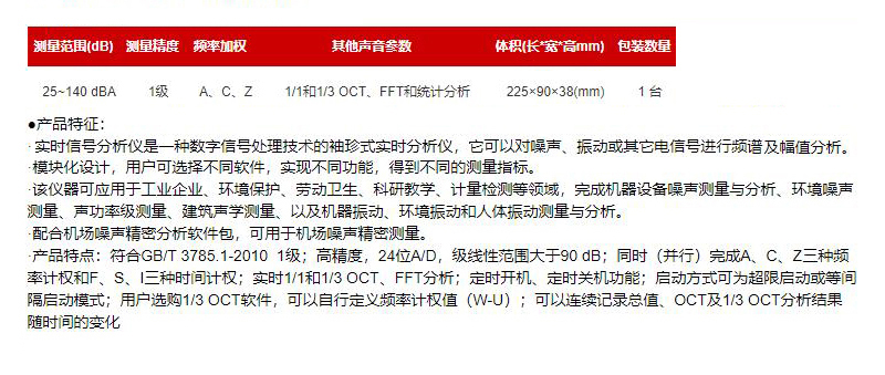 ·该仪器可应用于工业企业、环境保护、劳动卫生、科研教学、计量检测等领域,完成机器设备噪声测量与分析、环境噪声测量、声功率级测量、建筑声学测量、以及机器振动、环境振动和人体振动测量与分析