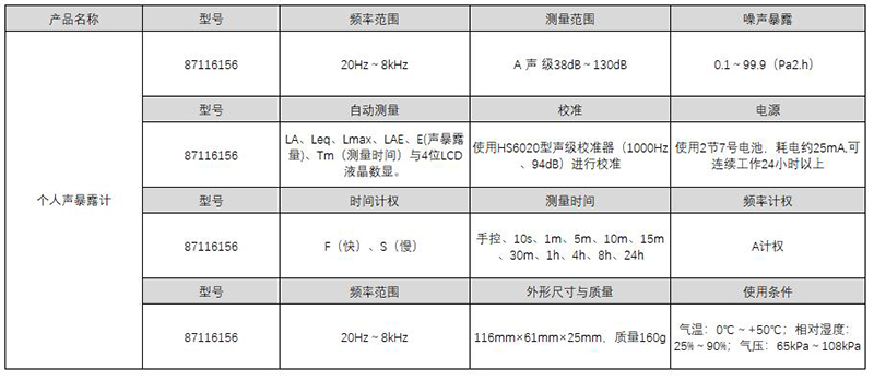 LA、Leq、Lmax、LAE、E(声暴露量)、Tm(测量时间)与4位LCD液晶数显。