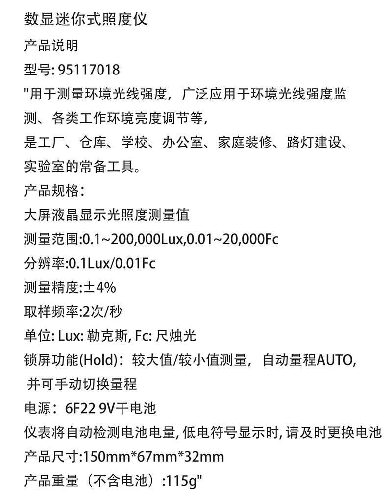 数显迷你式照度仪 95117018 150×67×32mm 1台