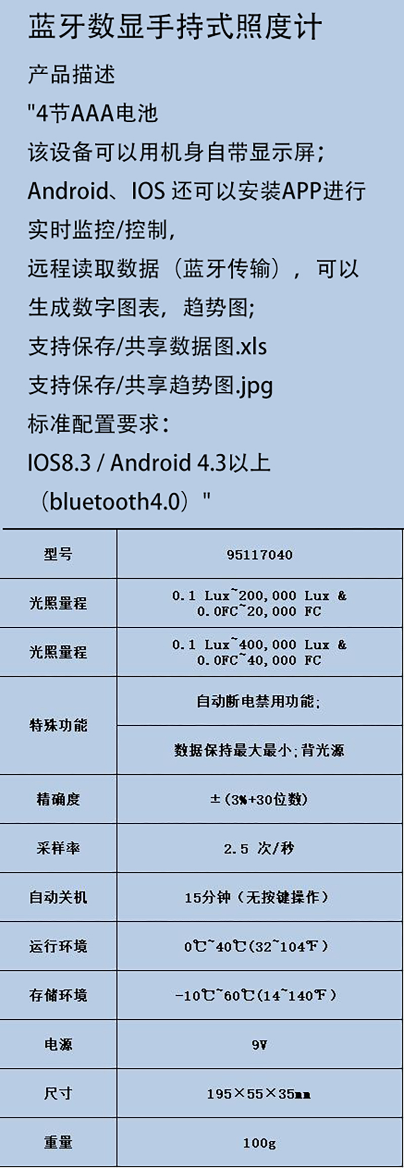 蓝牙数显手持式照度计 95117040 195×55×35mm 1台