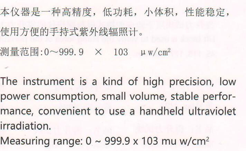 测量范围0~999.9×103μw/cm²