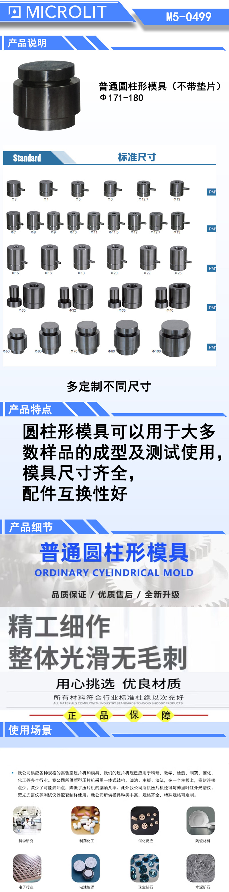 *长方形模具适合一些易成型的细长条样品,也可以根据用户需要定做各种特殊尺寸