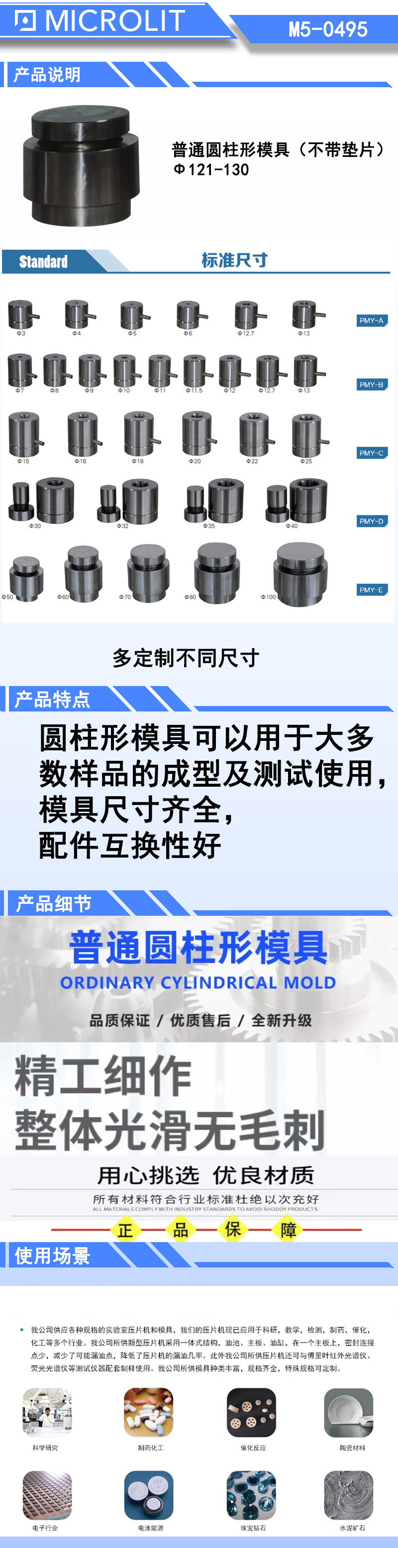 *长方形模具适合一些易成型的细长条样品,也可以根据用户需要定做各种特殊尺寸
