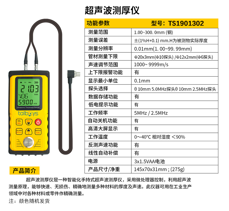 ·是一种智能化手持式超声波测厚仪,采用微处理器控制,利用超声波测量原理,能够快速、无损伤、精确地测量多种材料的厚度及声速。