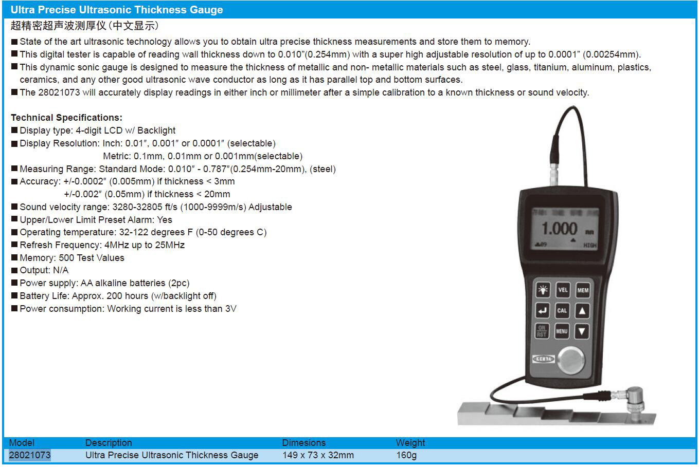 超精密超声波测厚仪 028021073 149×73×32mm 1把