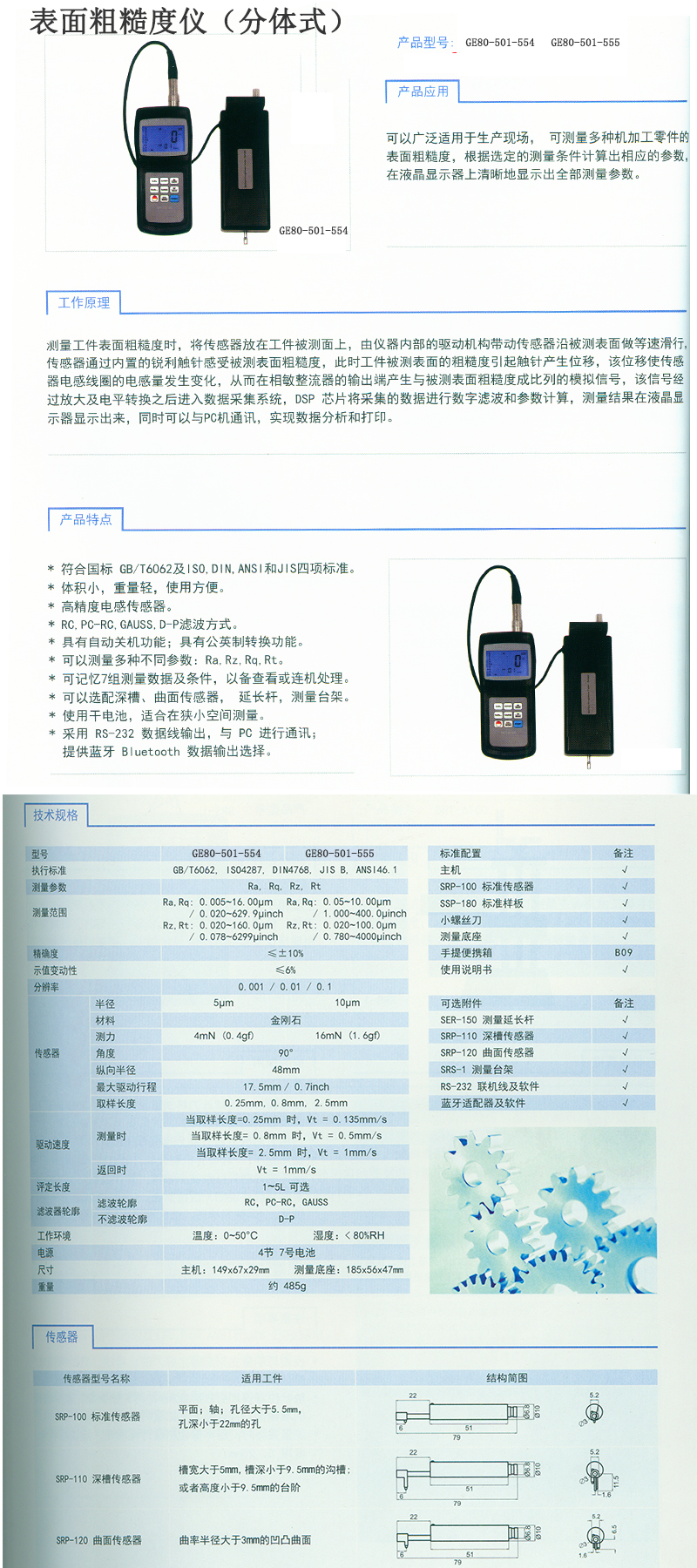 J154825 GE80-501-555 0.005-16.00μm/0.020-629.9μinch 传感器 ≤±10% 分体式表面粗糙度仪 17360.68