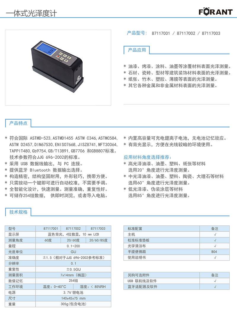一体式光泽度计 20/60/85度