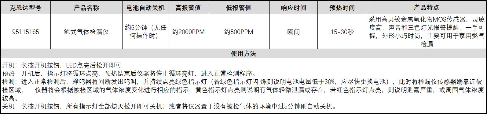 笔式气体检漏仪 95115165 声音和三色灯光报警提醒 1台