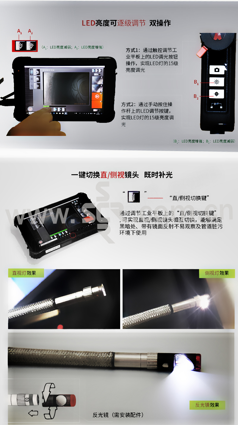 ·LED灯亮度可逐级调节;