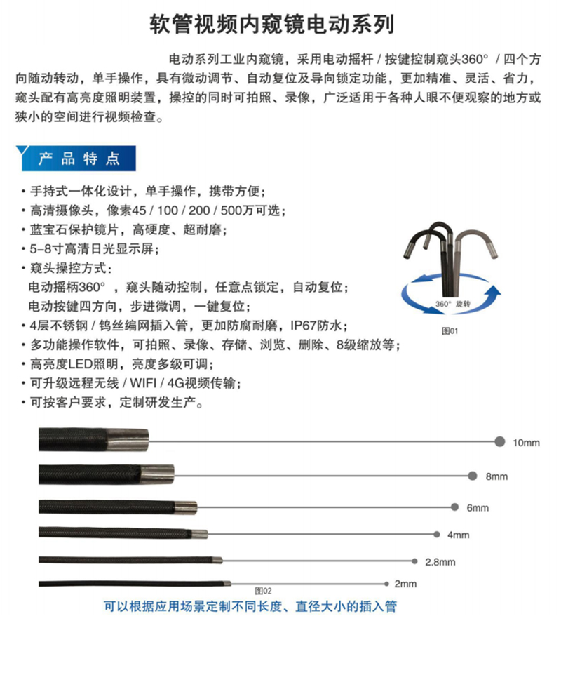 百万级电动360° 软管视频内窥镜