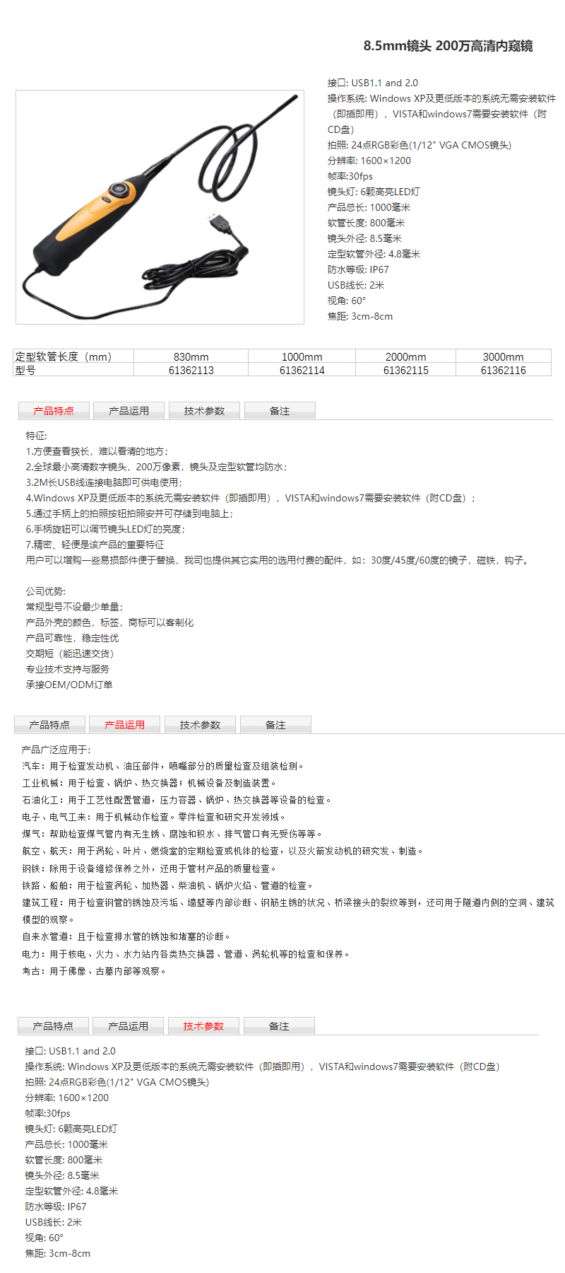 订货号 制造商型号 分辨率 探头长度 探头直径 是否可旋转 描述 价格 购物车
