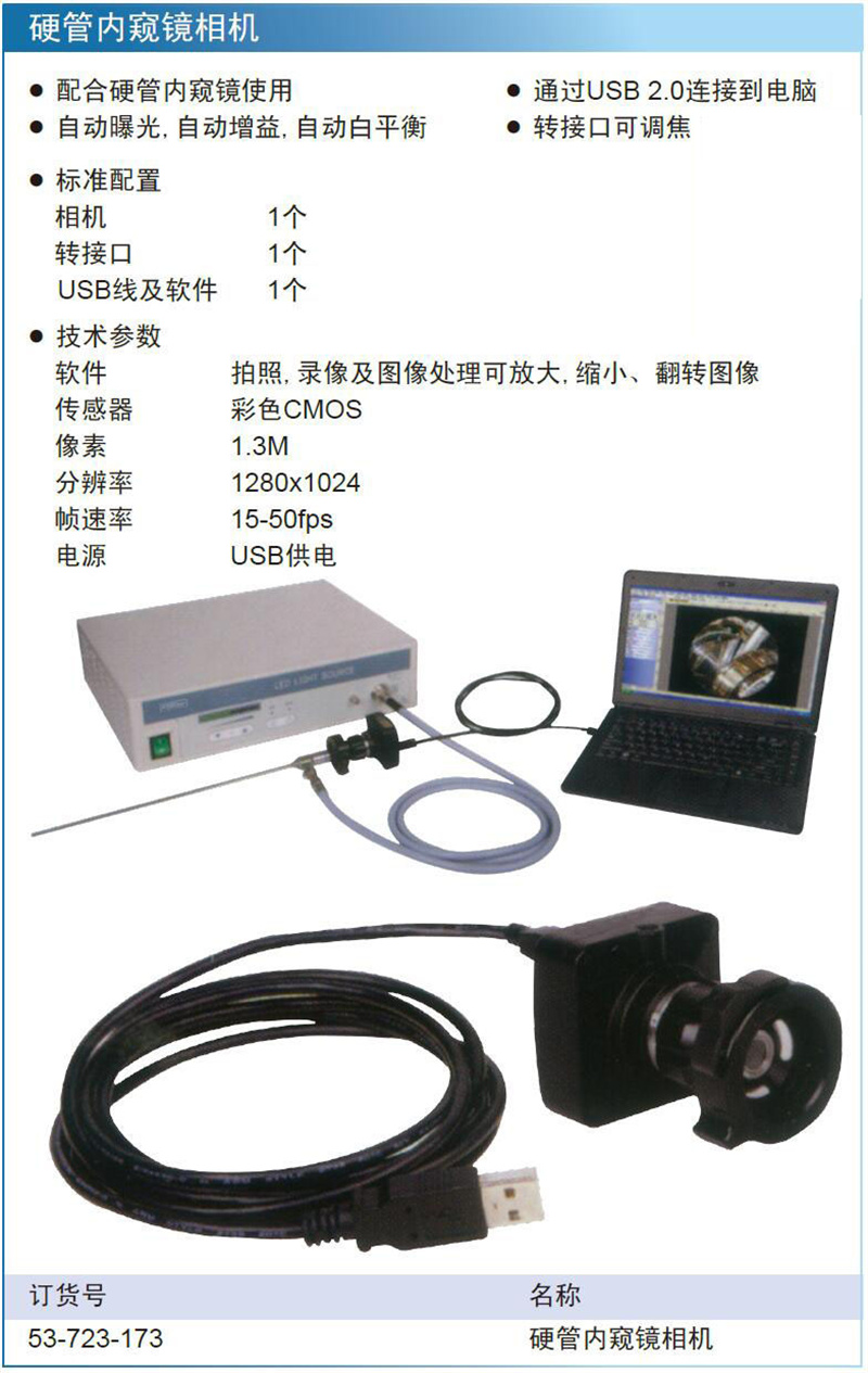 ·通过USB 2.0连接到电脑 ·自动曝光,自动增益,自动白平衡 ·转接口可调焦 ·标准配置相机 1个;转接口 1个;USB线及软件 1个