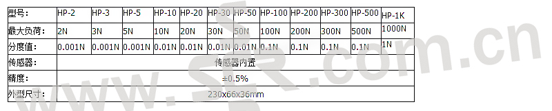 ·高精度高分辨率,准确度0.5级,最小读数达0.001N; ·峰值保持功能。保持峰值显示直至手动清零; ·峰值自动解除功能,保持显示峰值1至9秒后自动解除; ·N(牛顿)、kgf(公斤)、lbf(磅)三种单位可供选择、并相互换算; ·重力加速度设置功能; ·比较功能,上下限偏差值自由设定,红绿指示灯及蜂鸣器自动声光报警设置; ·特大记忆储存功能——888个测试值存储; ·感应式背光灯,开启关闭可自由设定; ·LCD液晶屏显示方