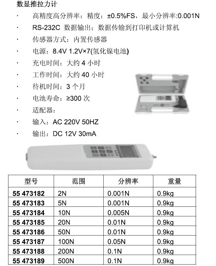 ·高精度高分辨率:精度: +0·5%FS, 最小分辨率:0·001N