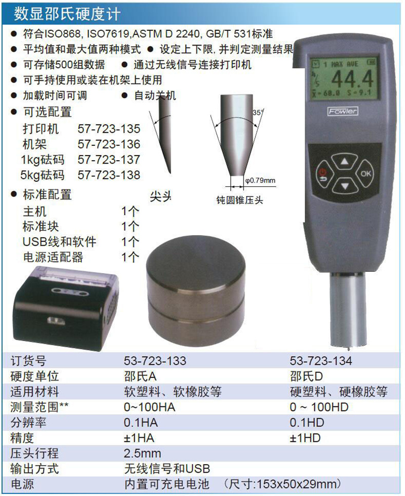 ·符合ISO868, ISO7619,ASTM D 2240, GB/T 531标准