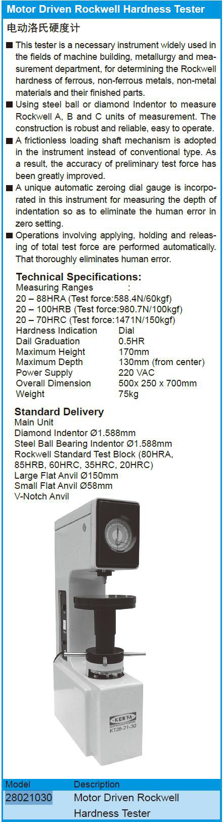 Motor Drien Reckwell Hardness Tester
